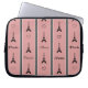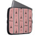 Paris illustration with Eiffel Tower and heart decoration and Paris text design on black, white and pink striped background