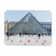 A beautiful view of the glass pyramid at the entrance to the Louvre Museum in Paris in France printed on a souvenir fridge magnet.