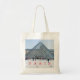 A beautiful view of the glass pyramid at the entrance to the Louvre Museum in Paris printed on a souvenir tote bag.