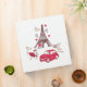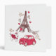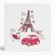 Cute cartoon design with the Eiffel Tower, a red card, a puppy, hearts and the word "Paris"