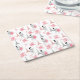 Paris Love Pattern – Eiffel Tower & Roses Seamless Square Paper Coaster