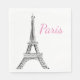 Party paper napkin shown in the white luncheon size with a paris eiffel tower print.