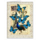 Pretty chic élégant collage numérique féminin romantique d'un oiseau paon et papillons bleus et tour eiffel, Paris, France sur un papier vintage carte postale arrière - plan et timbre français avec fleur de lys or. copyright Oconnart