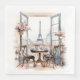 Party paper napkin is shown in a lovely watercolor print of Paris.