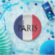 Paris text design illustration with Eiffel Tower decoration on grunge French flag background