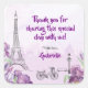 Say merci to your guests with a purple watercolor sticker perfect for a Paris themed event. The Eiffel Tower is surrounded by lovely purple irises with a Parisian skyline silhouette in the background. Customize the sticker for a Parisian themed wedding, bridal shower, engagement party, anniversary celebration, or birthday party. Use on favours to say thank you or as envelope seals. Available with matching products.