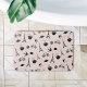Add a touch of Paris chic to your bathroom with our patterned bath mat in pastel blush pink and crisp black. Plush mat features tiny birds, croissants, macarons, roses, coffee cups, and of course, the Eiffel tower, in black and white on a pale blush background, for a sweet and whimsical take on the city of lights.