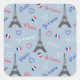 Seamless Paris text design illustration with Eiffel Tower, tricolor heart shapes and French flag decoration on blue background for Valentine's Day