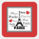 Paris text design illustration with Eiffel Tower and red hearts decoration in black and white squares on red background