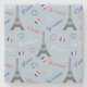 Seamless Paris text design illustration with Eiffel Tower, tricolor heart shapes and French flag decoration on blue background for Valentine's Day