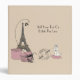 This design features the Eiffel Tower and a travel stamp of Paris, France and is accented by an adorable white poodle sporting a diamond stud collar and sitting on a pink pillow. Vintage hat boxes along with a pair of strappy sandals complete the look. There is customizable text on cover and spine for your personalization or if you prefer, you can delete the existing text.