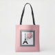 Paris illustration with Eiffel Tower and heart decoration in black and white squares on pink background