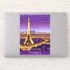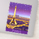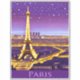 Sticker in an impressionist illustration of Paris against a starry purple sky, featuring the Eiffel Tower illuminated in golden yellow