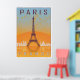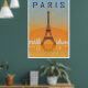 Paris vintage poster in orange and blue textured background with skyiline in white