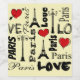 Paris text design for Valentine's Day with red heart shapes, Eiffel Tower and street lamps decoration on yellow background