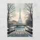Capture the romantic beauty of Paris in winter with this enchanting postcard. Featuring the iconic Eiffel Tower looming over a snowy riverside scene, complete with quaint bridges, streetlights, and snow-dusted trees. This vintage-style travel poster artwork is perfect for sending greetings, keeping as a keepsake, or framing as a piece of wall art. Ideal for Francophiles, travel lovers, or anyone dreaming of a cozy Parisian winter. Personalize it with your message for a beautiful holiday card or everyday note.