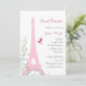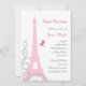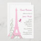 A tall, elegant and stately Eiffel Tower and fancy French script decorate this Parisian inspired invitation. This invitation is shown on the basic paper; however, I recommend the weight and texture of the linen paper.