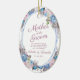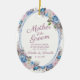 Parisian Charm Blue & Pink Floral Chic and Shabby Design with Painted Roses, Leaves, and Flowers. A Charming and Playful Look, with Blush Pink, Dusty Blue, Mauve, Dark Navy Violet colour palette. With Hand Painted Watercolor Floral elements, Vintage Classic Script Fonts and Oval Frame - Mother of the Groom Heartfelt Quote Keepsake Ornament!