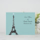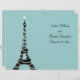 Sparkling twinkle lights accent the Eiffel Tower on this Parisian inspired wedding program. It is printed on the light weight flyer paper, so that it is easy to fold in half.