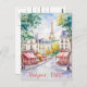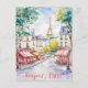 This watercolor painting depicts a charming street scene in Paris, France. The iconic Eiffel Tower stands tall in the background, while charming cafes and shops line the cobblestone street. The warm colours and delicate brushstrokes create a romantic and inviting atmosphere.