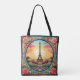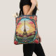 Bright Parisian Sunset Eifel Tower Paris French France Floral Tote Bags features an art deco style Paris sunset with the Eifel Tower in a bold floral frame. Created by Evco Studio www.zazzle.com/store/evcostudio