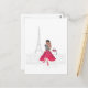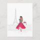 Add a touch of Parisian charm to your correspondence with this postcard featuring a Parisian woman in front of the iconic Eiffel Tower.