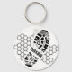 Packour training keychain with footprint and geometric block background.