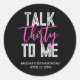 Épicez votre 30e anniversaire Talk Thirty to Me avec des stickers de faveur de soirée éblouissants ! Les stickers Talk Thirty to Me Anniversaire allient des teintes noires, roses et blanches classiques pour un look intemporel qui fera passer votre célébration spéciale au niveau supérieur.