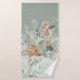 Un hippocampe et une étoile de mer sont élégamment entrelacés de plantes marins, créant une scène sous-marine sereine. Des couleurs douces et feutrées et des détails délicats évoquent une ambiance calme et côtière.