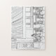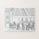 L'illustration d'un café parisien dessiné à la main fait un étonnant puzzle. Scènes emblématiques de Paris, France transformée en un puzzle enchanteur pour les loisirs ou les soirées de jeux.