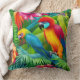 Parrot Birds Tropical Floral palms blue green Throw Pillow