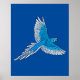Print of an Amazon Parrot in flight - cerulean blue and white against a deep cobalt blue background - digitally enhanced photography