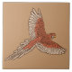 Ceramic tile patterned with an Amazon Parrot in flight - rust brown / terracotta and cream against a camel tan background - digitally enhanced photography