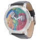 Portrait of two tropical macaw parrots in love - Watch Classic Black Leather Strap & White Numerical Clock Face. A cute love story. He whispered in her ear everything she longed to hear - 3 words - I love you! ❤ One parrot is blue & yellow, and the other is scarlet red colour