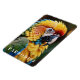 This magnet is shown with a photo art print of a beautiful tropical parrot.