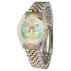 The watch is bright and shiny. It feels strong and durable. It is very appealing and attractive. The printed image appears clear. It is a perfect reminder for me to "Be Present" everywhere I go.