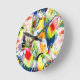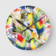 Parrots And Palm Leaves Round Clock