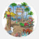 Parrots Beach Party with Crabs, Seagulls, Starfish, radio, surf boards, boats, sand, blue sky, palm trees