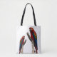 Two sides custom all-over-print tote bag, this bag has on the front two parrots and on the back E&K signature logo, so you can wear it sometimes with the black side and other times with the parrots side.