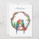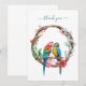 A beautiful watercolor drawing of Parrots sitting in a floral wreath thank you card. The top text can be edited to say what ever you wish. Can be used for thank you cards or note cards. The back is left blank for your message.