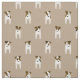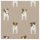 This Parson Jack Russell fabric features a linear, staggered pattern of eight tiny cartoon "Jacks" with various brown and black facial and body markings - looking closely, you can see each of the dogs has a whimsical head tilt - the background colour is customizable, currently taupe - Jack Russell Terriers pattern © katz_d_zynes 2019