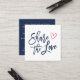 Encouragez les clients à recommander des amis avec ces cartes de carré chic en bleu marine et blanc avec une pop de rose fuchsia. Parfait pour les salons, les techniciens en ongles, les coiffeurs, les maquilleurs et les boutiques, notre design moderne et simple "partage l'amour" en lettres manuscrites noires accentuées d'un coeur dessiné rose. Personnalisez l'envers avec vos conditions de référence, votre nom d'entreprise, votre emplacement et vos coordonnées. Inclut l'espace pour les noms du référent et du nouveau client.