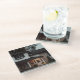 This exquisite glass coaster prominently features a striking black and white image of a slightly shaded house, illuminated by the warm glow of a porch light. The composition captures the serene beauty of the dwelling from an external perspective, emphasizing the interplay of light and shadow. This artwork not only serves a practical purpose but also enriches the aesthetic of any space it adorns.