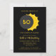 This invitation makes a bold statement with its black background, gold text, and partial solar eclipse design, featuring the moon partially covering the sun for a striking and mysterious effect. The number 50 takes centre stage, shining bright just like the birthday star!