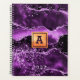 Un agate rose et violet profond, arrière - plan en pierre de marbre avec fausse parties scintillant. Personnalisez et ajoutez votre monogramme initial et un an. Un cadre doré pour votre lettre monogramme.