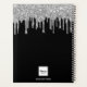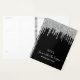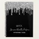 Un arrière - plan noir chic avec des gouttes de parties scintillant en faux argent tendance, la peinture goutte à goutte. Personnalisez et ajoutez une année, un nom et un titre. Le nom est écrit avec un script de style moderne écrit à la main avec des swashes. Parfait pour l'école, le travail ou l'organisation de votre vie personnelle/familiale. Pour que les swashes ne suppriment que le nom de l'échantillon, laissez les espaces ou émoticônes devant et après le nom. Texte blanc.