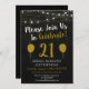 Une parties scintillant en noir et or Invitation à la fête du 21e anniversaire avec des lampes à cordes et des ballons d'anniversaire