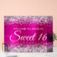 Créez votre propre Sweet 16 - 16ème anniversaire fête bienvenue acrylique signe pour votre ami. Customisez la calligraphie moderne et élégante avec une police moderne de style tout casquette en noir pour créer votre propre signe personnalisé. La parties scintillant gris argenté brillant et le papier métallique rose chaud magenta sont créés avec des graphiques numériques qui s'impriment comme une photo sur votre panneau.