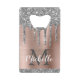 Parties scintillant de luxe, en argent girly goutte nom personnalisé et ouvre-bouteille monogrammed. Caractéristiques gris argenté (gris) parties scintillant éclatante gouttes sur rose blush or brossé métal arrière - plan avec monogramme personnalisé initiale et premier nom modèle texte. Grand cadeau féminin pour petite amie, mère, anniversaire, mariage, fête de 16 ans, douche nuptiale, baby shower, affaires et pour toute personne qui aime des choses brillantes et glamour. Veuillez noter que ce design est imprimé effet photo.