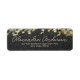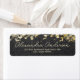 Design moderne et soigné personnalisé de l'étiquette d'adresse de retour avec un arrière - plan de glitterie noir et or avec votre nom écrit dans un script moderne. Le texte est entièrement personnalisable.
